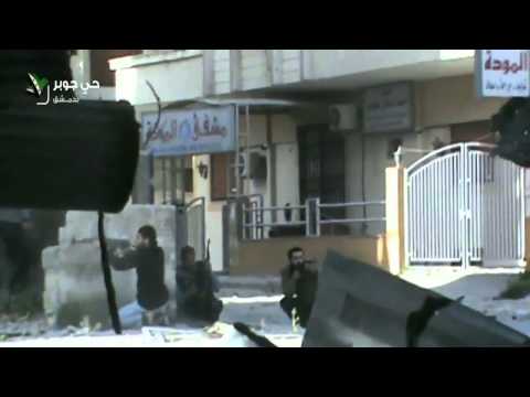 دمشق جوبر الجيش الحر يقوم بانتشال امرأة مصابة من أمام قناصة قوات النظام 6 4 2013